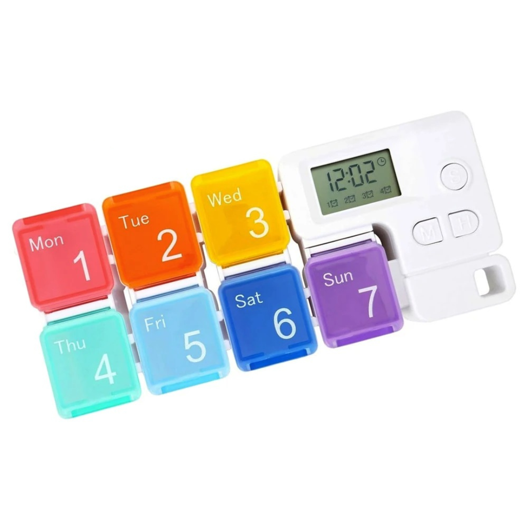 Organiza tus pastillas de forma sencilla y evita olvidos gracias a sus compartimientos y su alarma recordatoria. Ideal para ti, para tus padres o para cualquier persona que necesita una ayuda extra con su medicación diaria.